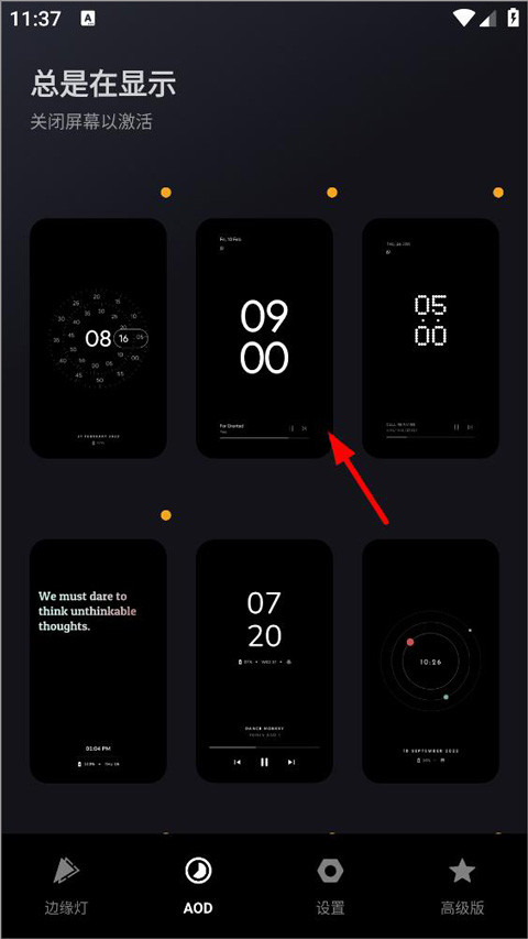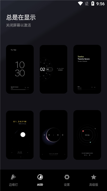 6、边缘灯设置后,打开AOD可在该页面选择喜欢的屏幕显示方式;