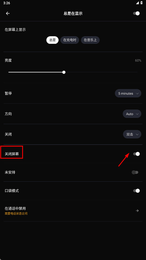 当可视化工具处于活动状态时,可调暗背景并保持屏幕打开的选项。