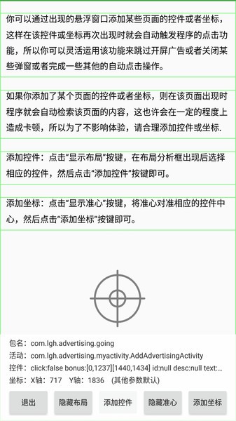 4、长按屏幕上的悬浮图标,可进入规则编辑界面查看或修改已设置的坐标;