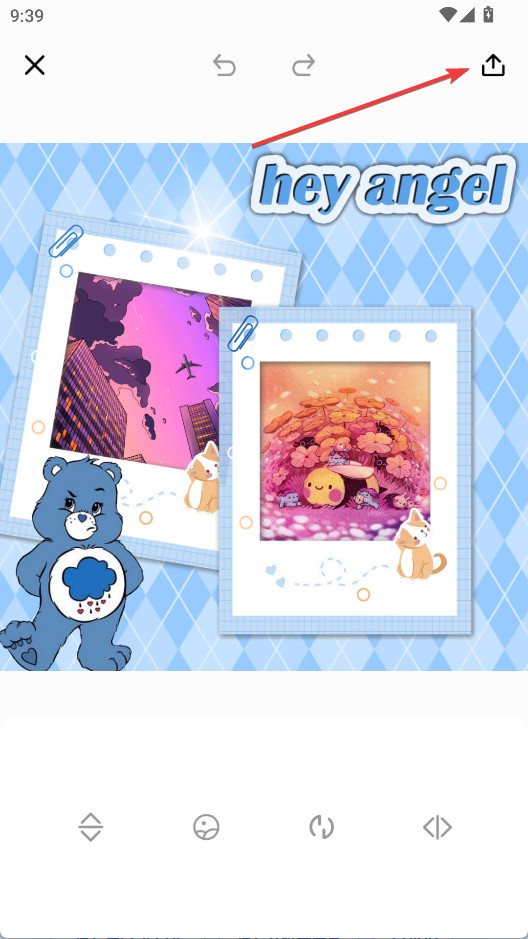 4、通过底部工具编辑拼图,点击右上角按钮导出