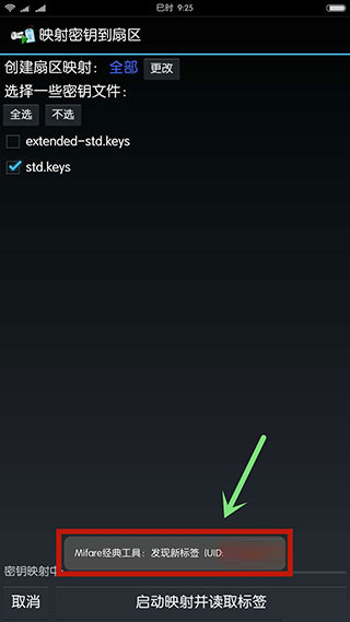 2、选择启动映射并读取标签,这时软件会读取卡片上的信息;