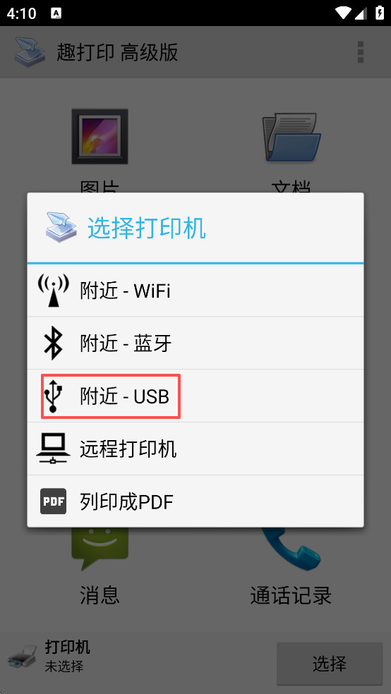 2、可通过WiFi、蓝牙、USB或互联网选择打印机;