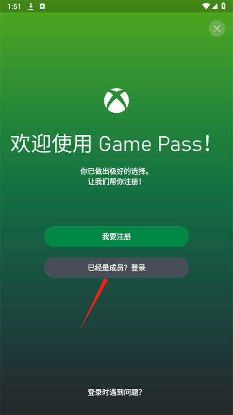 1、打开Xbox云游戏,在登录界面中点击已经是成员。