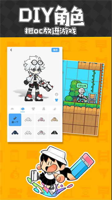 无论是主题背景、人物角色、机关障碍、道具和头像,全部都可以随时随地自由创作!同时还可以提交自己的素材作品到商店,分享给其他创作者使用以及在创作。