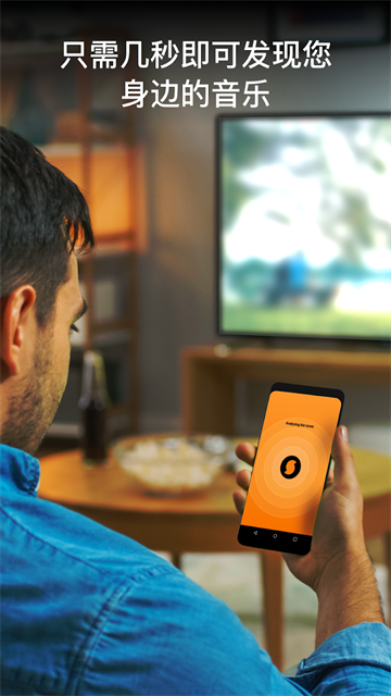 1、点击橙色按钮可立即辨识歌曲并看到实时歌词,还能播放视频、分享、在线播放或购买。