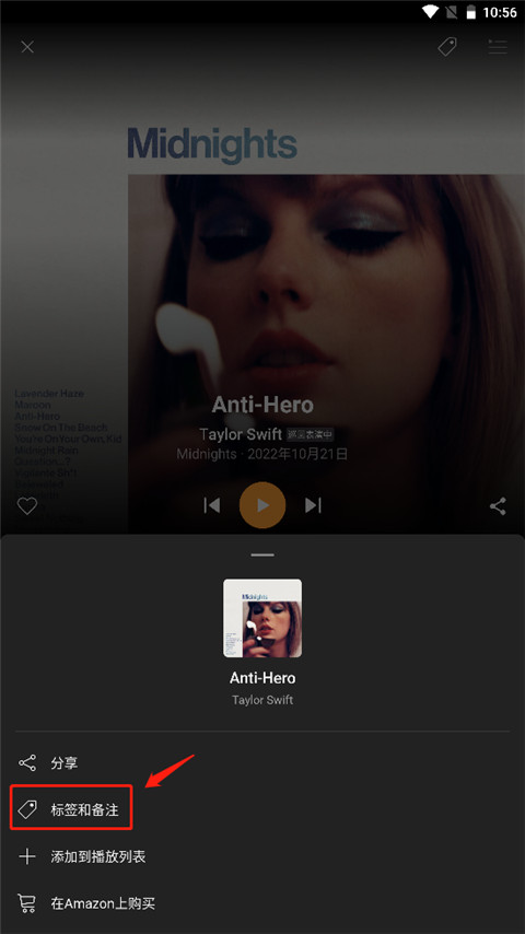 2、在弹出来的菜单选择“标签和备注”菜单。