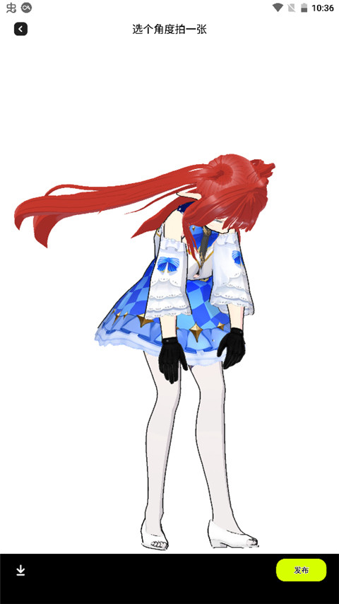 3、然后随意选择一个角度进行拍摄,点击发布;