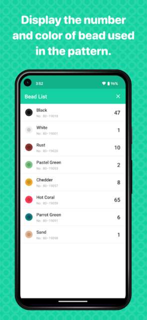 4、提供了多种颜色的豆豆供用户选择,同时软件会自动统计使用的豆豆数量和颜色,方便用户在创建实际拼豆艺术时参考