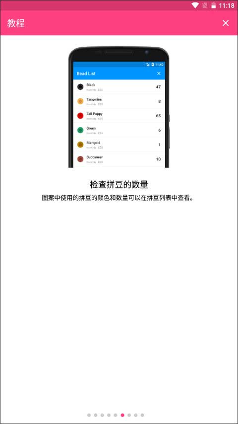图案中使用的拼豆的颜色和数量可以在拼豆列表中查看。