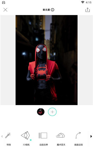 5、点击下方的3d zoom进入,可以给图片添加许多图片动态效果;