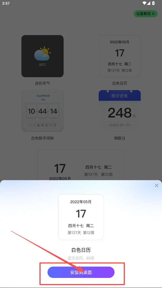 2、点击需要添加的组件,如:天气预报、日历、时钟