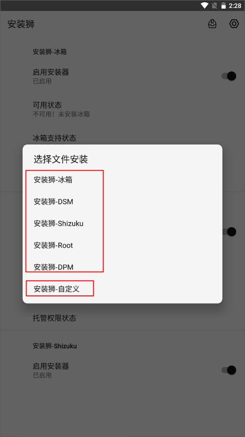 4、安装狮-自定义 可设置自定义安装器后发起安装请求