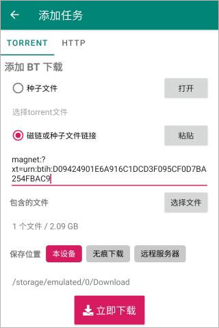 支持下载种子和磁力链接