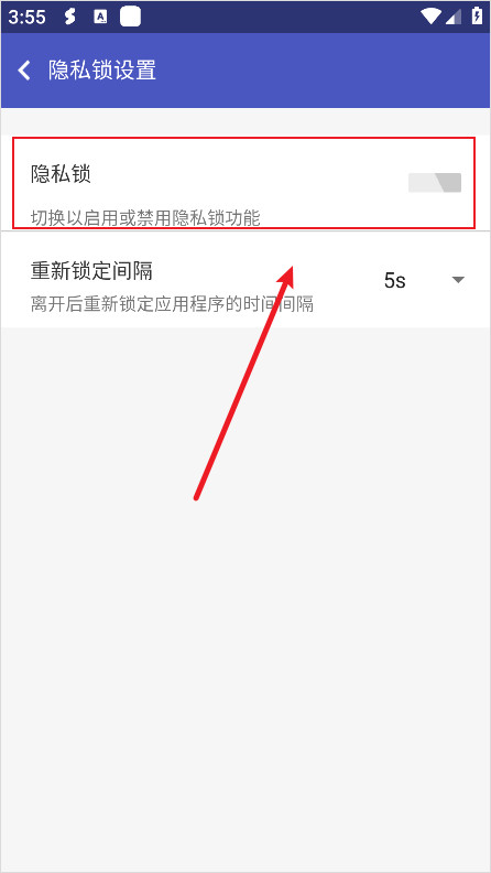 2、然后将隐私锁的开关打开。