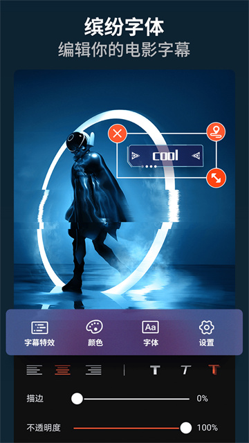 3、可以添加文字到视频,多内容可以在您的视频中添加,调整它精确的计时,各种颜色