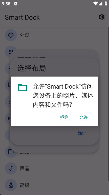首次使用时,授权Smart Dock访问设备上的照片、媒体内容和文件,点击“允许”,若拒绝则点击“拒绝”。