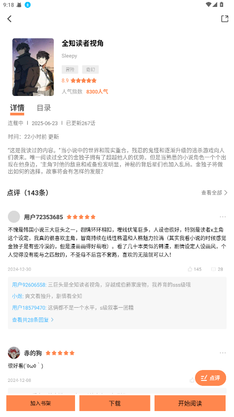4.点击喜欢的漫画封面,即可进入详情页面,在这里你可以查看简介、章节列表,并进行在线阅读、缓存下载、发表评论等多种操作,享受个性化阅读体验。