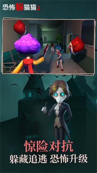 恐怖躲猫猫2是一款经典非对称性对抗竞技手游,将玩家分为两个不对称的阵营,即抓捕者和躲避者阵营。游戏以捉迷藏为核心玩法,玩家将在限定地图内展开一场紧张刺激的追逐躲藏游戏。玩家可以选择追捕者在限时时间内找出并淘汰所有躲避者,体验掌控和追逐的快感,也可以选择躲避者,伪装成物品,利用地形灵活走位,躲避追捕揭开谜题。游戏玩法丰富,刺激的追逐躲避战让人心跳加速,紧张感十足。