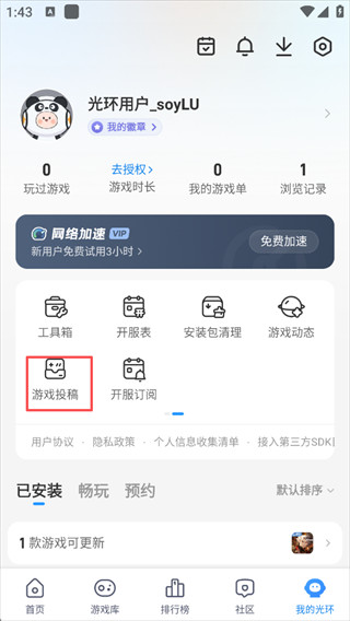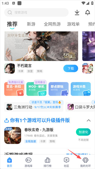 1、进入光环助手后,先点击底部导航栏中的社区选项。