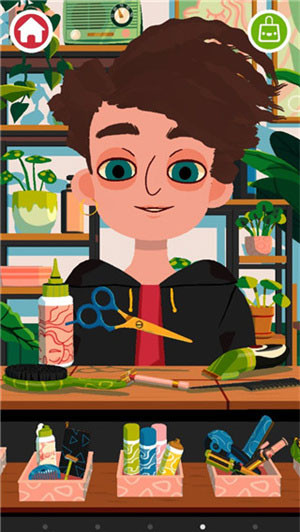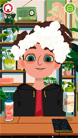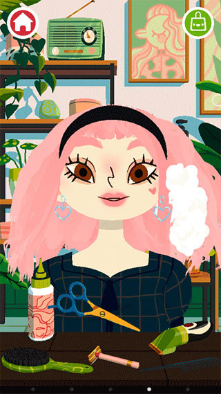 使用工具:在顾客的头发上滑动、点击或长按即可。例如,滑动剪刀即可剪发,点击染发剂瓶再点击头发即可上色。