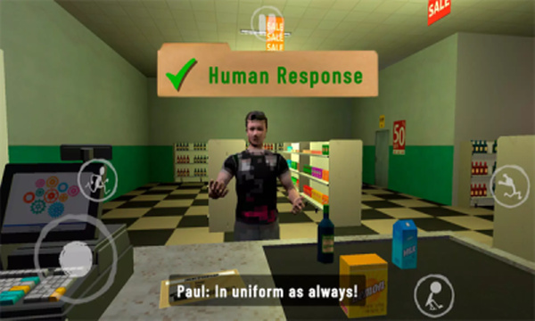 准备逃跑: 结账后,密切关注该伪人的动向。一旦它表现出明显的攻击性(如突然停下、发出怪声、向你快速靠近),不要犹豫,立刻点击逃生按钮逃离柜台。