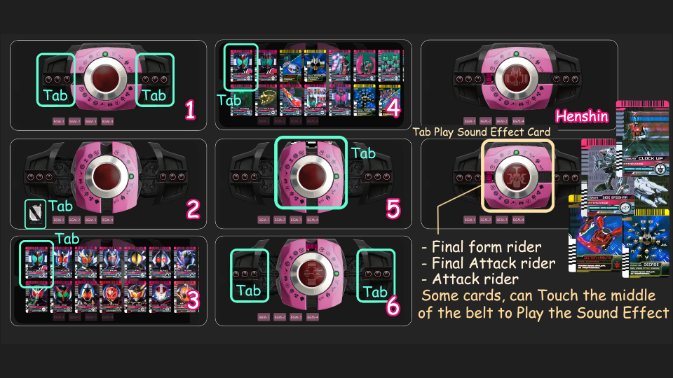 切换形态: 通常可以模拟使用其他骑士的卡片,切换形态并播放相应的音效。