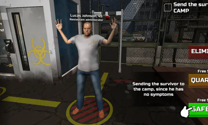 2、根据线索判断其状态,健康者放行进入,可疑者送入隔离区观察,确认感染者立即执行清除程序。