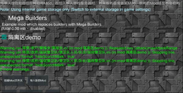 2、选择创建新的mod文件夹,然后点击导入新的mod保存。