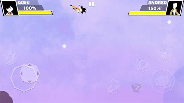 1、火柴人悟空格斗的游戏操作十分简单,玩家只需要左手滑动方向按钮就可以控制玩家角色的移动方向,点击拳击按钮玩家角色将使用拳击攻击对方,点击下踢按钮就可以控制玩家角色使用腿攻击对方,点击大招按钮就可以释放一道激光能量去攻击对手。当玩家被对手先一步击败,玩家游戏挑战失败。当玩家将对手击败,玩家游戏挑战成功。玩家还可以在战斗中不断的进行普攻来积累怒气,当你拥有足够多的怒气时,就可以放出大招,你的必杀技了,一招将敌人击翻在地。