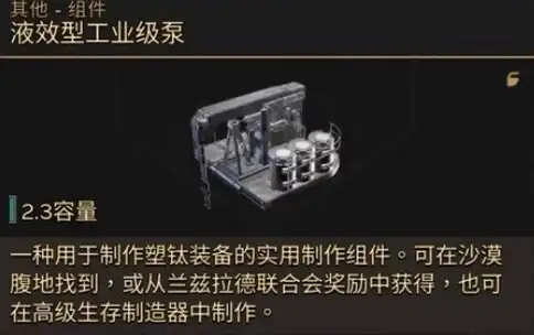 主要在屏蔽场产出,其中工业级泵在东部的哨兵城中产出