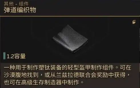 可以在屏蔽场西部找到,如果急需材料,可以在哈克村的载具商人那购买