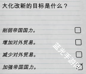 动漫都市也就是AnimeCity3D游戏,游戏中的历史考试需根据题目来选择所对应的正确答案。下面是详细列举游戏中历史考试的题目以及对应的答案内容详情!