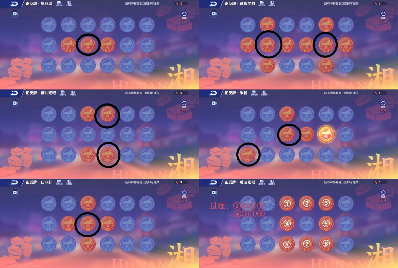 QQ飞车中秋小游戏中需要翻转图中的各个正反牌,每一关的正反牌不一样,部分关卡中需翻多张牌,且有一定的顺序要求。下文列举详细具体的各个关卡的正反牌翻转详细答案!