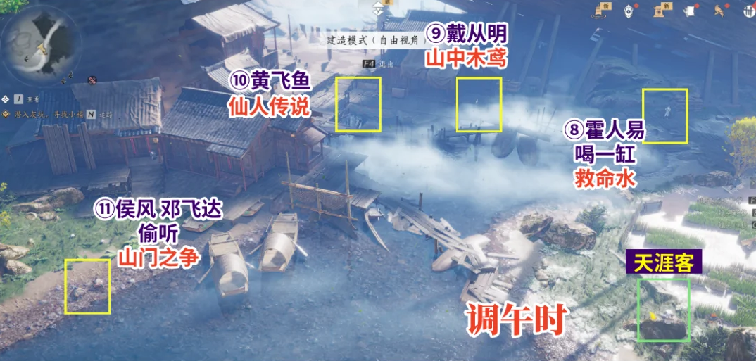 燕云十六声不见山千年渡有13个见闻,分别需要完成青衣公子的托付、飞天神女、飞天城塌了、洪灾侵袭、桃源在天、神女颌首、迷雾之地、救命水、山中木鸢、仙人传说、山门之争、荒野足迹、不收钱的船。下面列举具体的见闻位置!