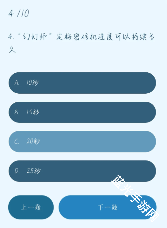 4、“幻灯师”定格密码机进度可以持续多久?20秒