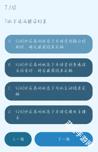 7、以下说法错误的是?幻们灯师在 离形状态下本体受到强力控制时,将会提前结束定格