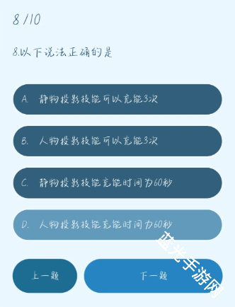 8、以下说法正确的是?人物投影技能充能时间力60秒
