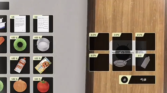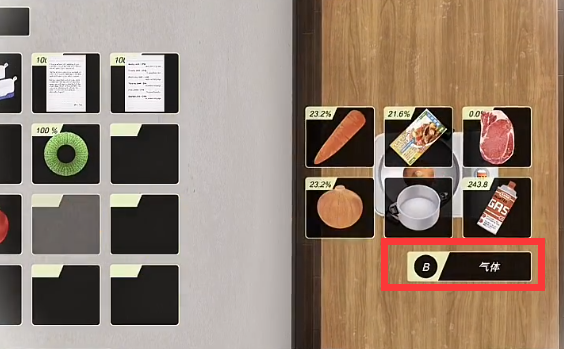 4、所有食材都放置后,点击气体即可进行制作,最后等待进入达到100%即可制作完毕