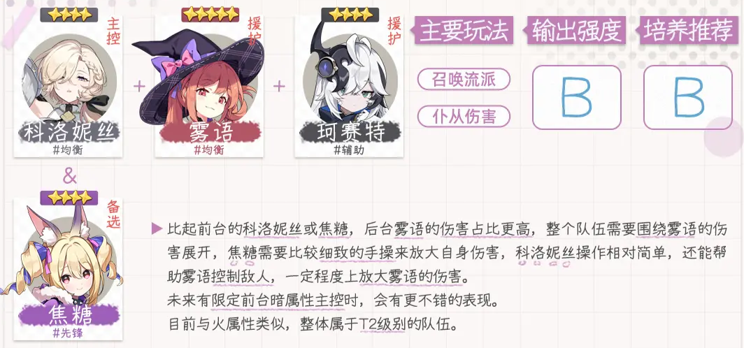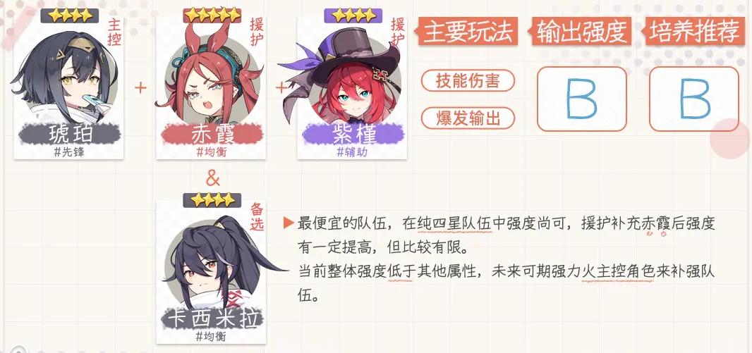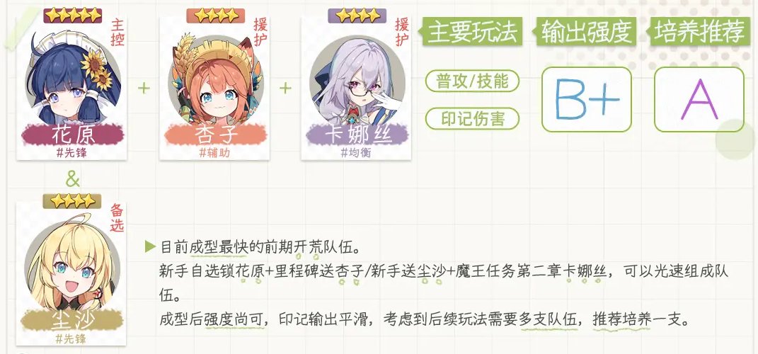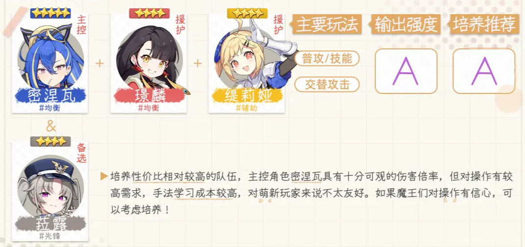 星塔旅人角色队伍组成搭配可以从各个属性来进行分配,水属性的队伍搭配角色为千都世+苍兰+特丽莎,备选师渺和鸢尾;地属性的队伍搭配角色为格芮+小禾+岭川;光属性的队伍角色为密涅瓦+璟麟+缇莉娅;风属性的队伍搭配角色为花原+杏子+卡娜丝;火属性的队伍搭配角色为琥珀+赤霞+紫槿;暗属性的队伍搭配角色为科洛妮丝+雾语+珂赛特。