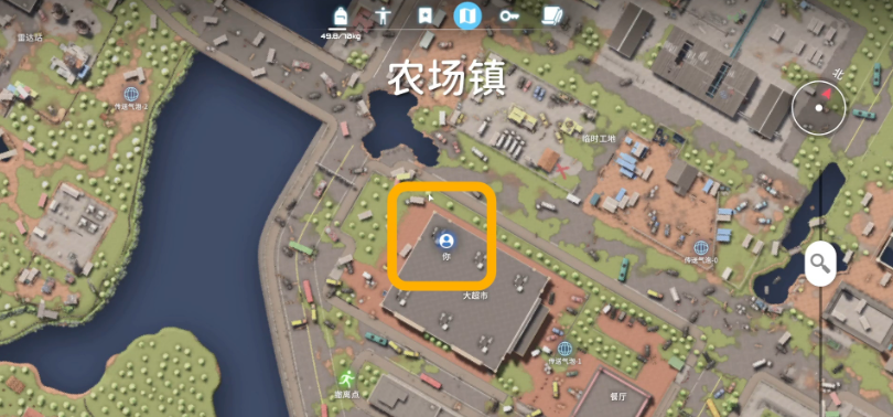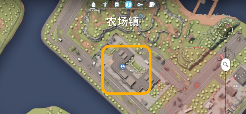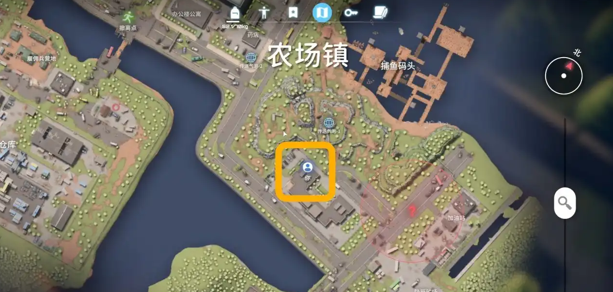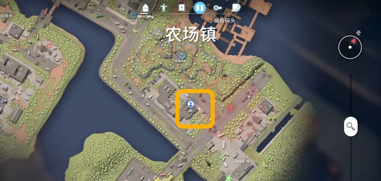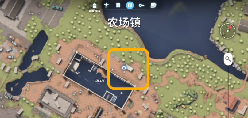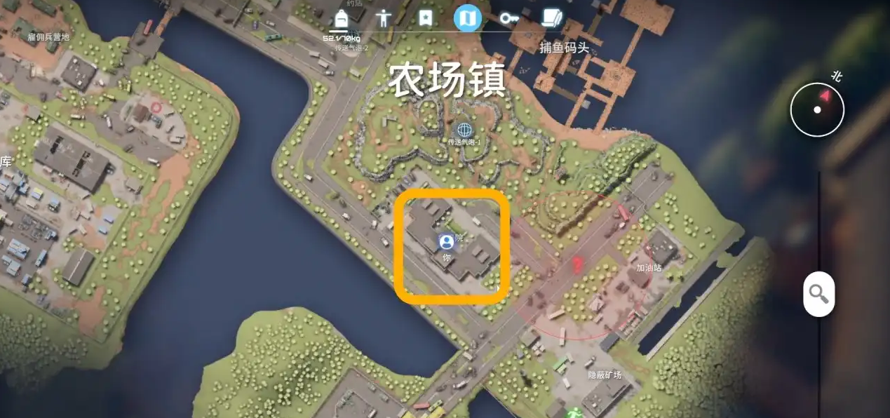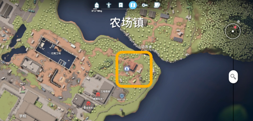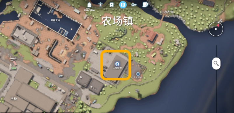 位置在工地宿舍和山边农舍中间,传送气泡3的上方