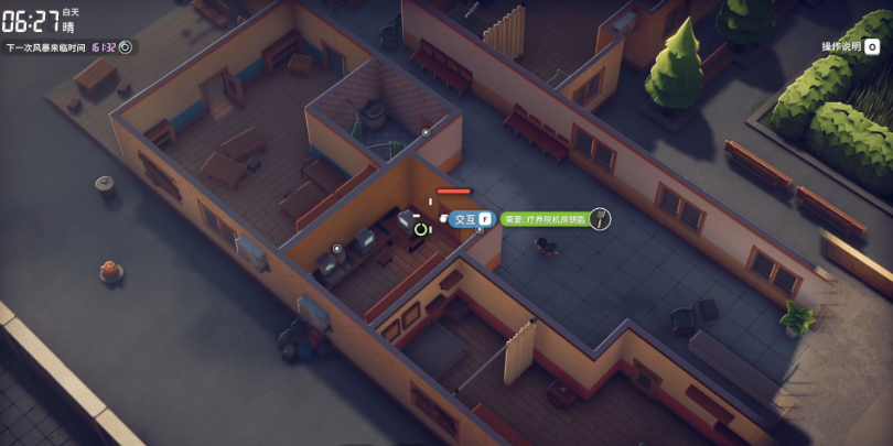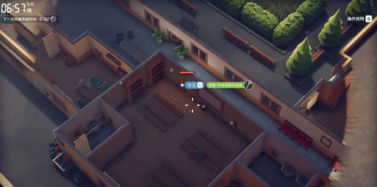疗养院中间位置,有三个门,可以从楼外的侧门直接打开,楼内过道处也有两扇门可以开