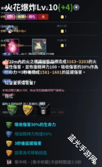 永恒之塔2升级剧情上的小怪伤害也较为高,需要合理分配技能点数来点技能。魔道星火系技能加点主要以火花箭、火花叉、地狱火焰为核心,其它选择火花爆炸、酷寒之风、冰冻锁链、火焰扫射。其它烙印方面的选择内容以及天赋内容见下文内容!