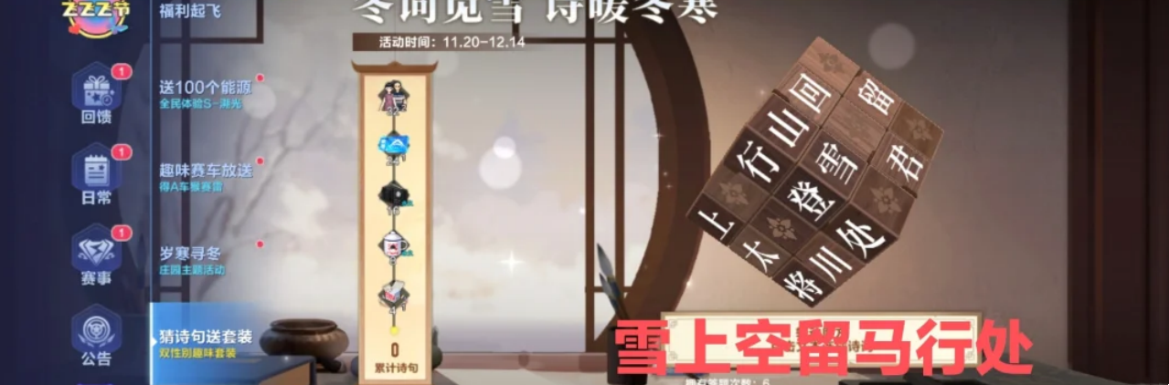 QQ飞车手游冬词觅雪诗暖冬寒猜诗句第六天答案